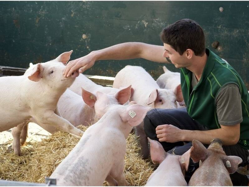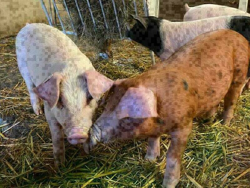 Frisches Schweinefleisch aus eigener Aufzucht. Schweinehaltung mit Stroh und Auslauf an der frischen Luft.